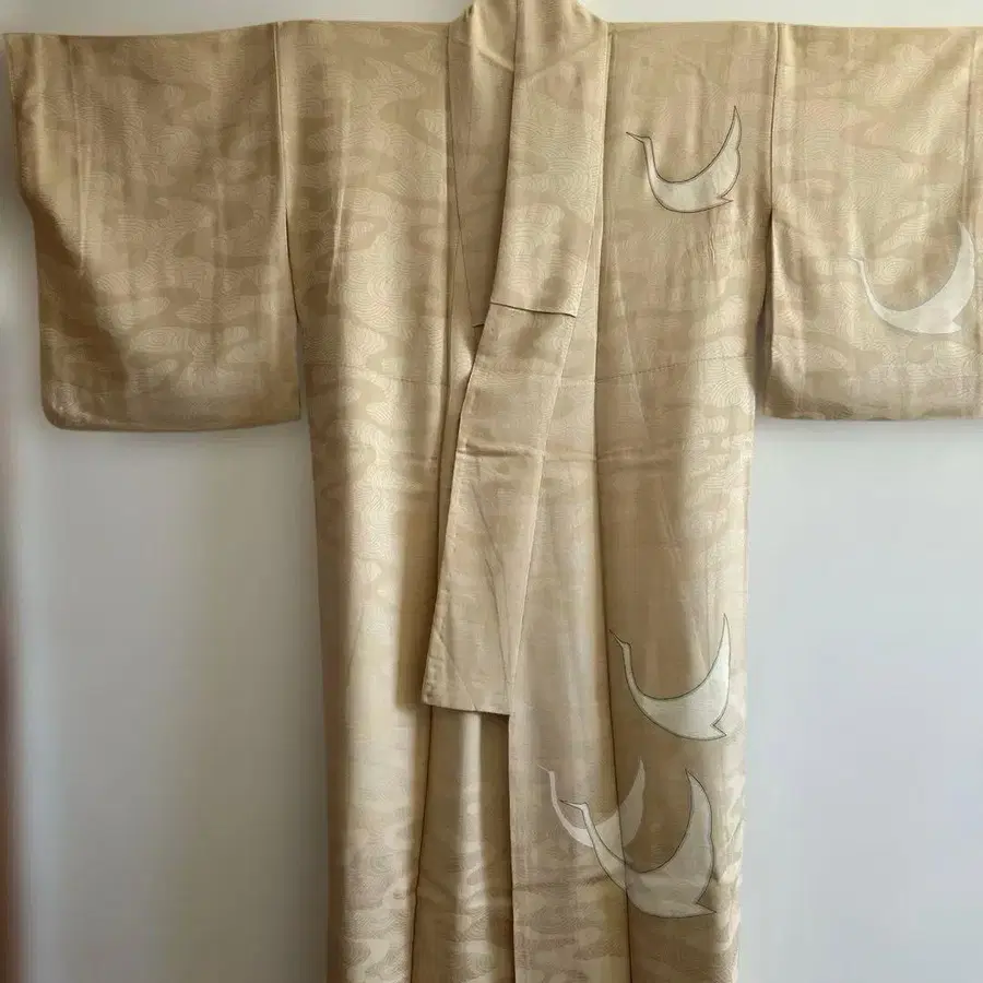 디자인된 새가 그려진 호몬기입니다. 원단 패턴도 디자인성이 뛰어나 멋스럽다고 생각합니다. 양도받은 것으로, 하나뿐인 문양이긴 하지만 일반적인 문양이므로 신경 쓰지 않고 착용했습니다. 오비나 잡화를 활용하면 폭넓은 연령대의 분들이 착용하실 수 있다고 생각합니다. 색상은 7번째 사진의 색상이 가장 비슷하다고 생각합니다. 안타깝게도 하자 있음입니다. 왼쪽 가슴 부분과 오른쪽 소매 끝 뒤쪽이지만, 자세히 보지 않으면 크게 신경 쓰이지 않을 것이라고 생각했습니다. (개인차가 있을 수 있습니다.) 하자 있음이므로 저렴하게 판매합니다. 기장 152cm 화장 63cm 소매 길이 49cm 앞폭 22.5cm 衽 15cm 대략적인 수치입니다. 단순한 개인 판매이므로, 세세한 부분을 신경 쓰시는 분이나 리사이클 상품 구매에 익숙하지 않으신 분은 구매를 삼가해 주시기 바랍니다.