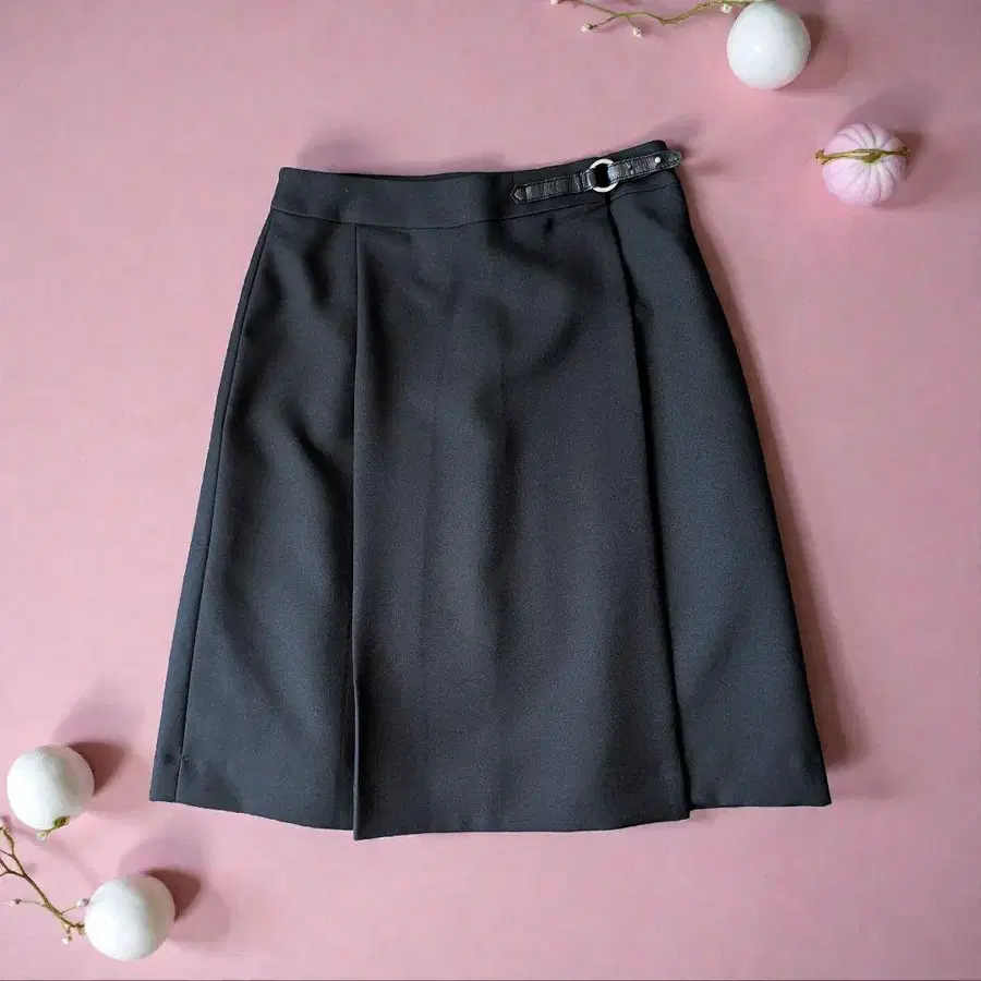 블랙 사이드 벨트 플리츠 스커트