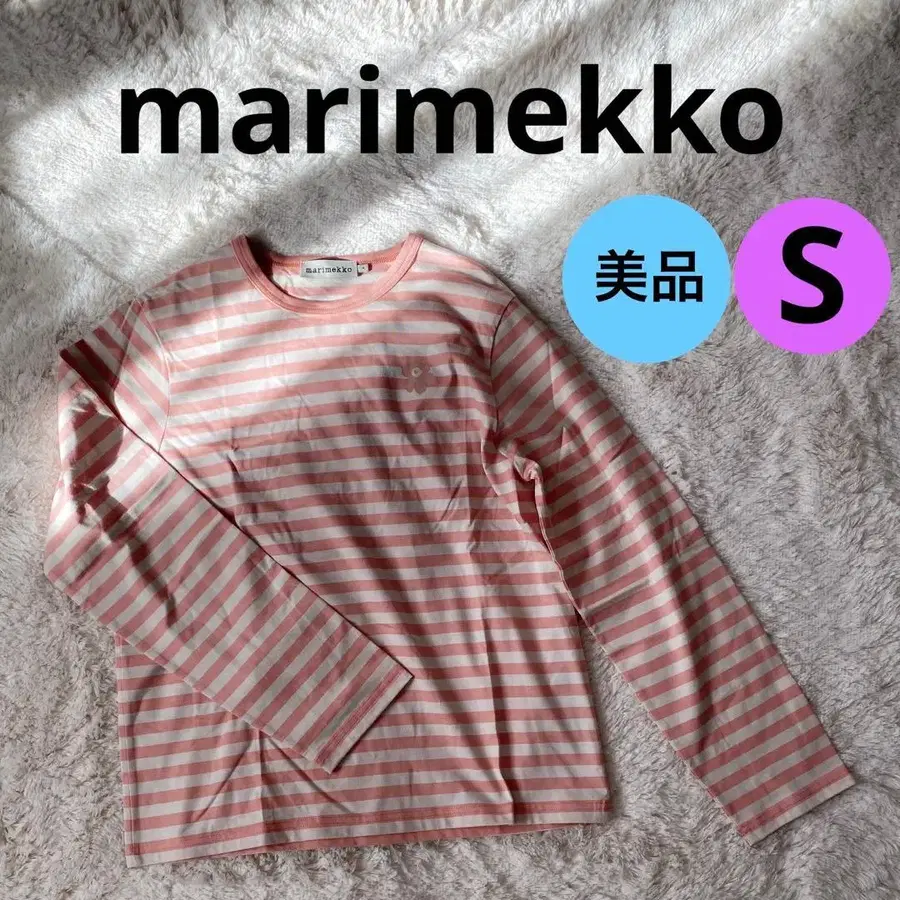 새상품급 marimekko 보더 긴팔 T셔츠 S 핑크&화이트