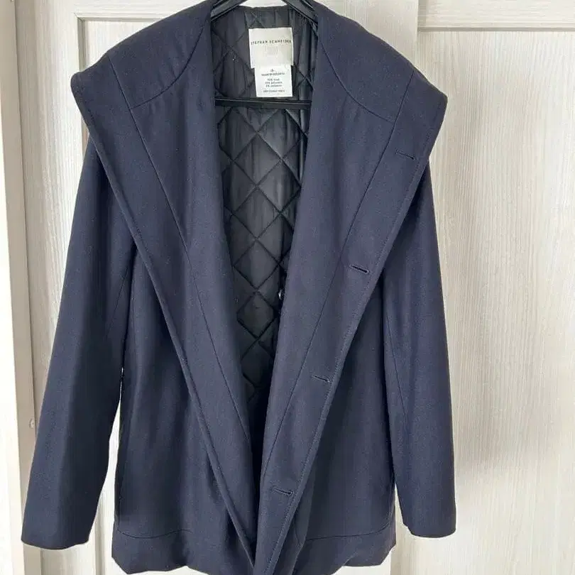 STEPHAN SCHNEIDER의 스테디셀러인 울 후디드 코트입니다. 색상은 네이비이며, 군더더기 없이 심플한 디자인이지만 버튼의 배치가 특징적이며, 잠그는 방식에 따라 다양한 스타일로 연출할 수 있습니다. 충전솜이 들어 있어 한겨울에도 따뜻하게 입을 수 있지만, 그다지 부해 보이지 않고 가볍습니다. 사이즈는 신장 167cm, 슬림한 체형의 제가 입었을 때 딱 맞았습니다 (약간 타이트하게 입는 느낌).