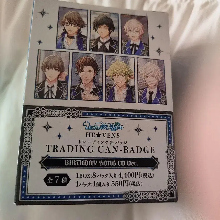 우타노 ☆ 프린스사마 ♪ HE ★ VENS 트레이딩 캔뱃지 BIRTHDAY SONG CD Ver. 1BOX 8팩입 정가 4400엔. 박스 미개봉품입니다. 타이틀 - 우타노 ☆ 프린스사마 아이템/종류 - 캔뱃지