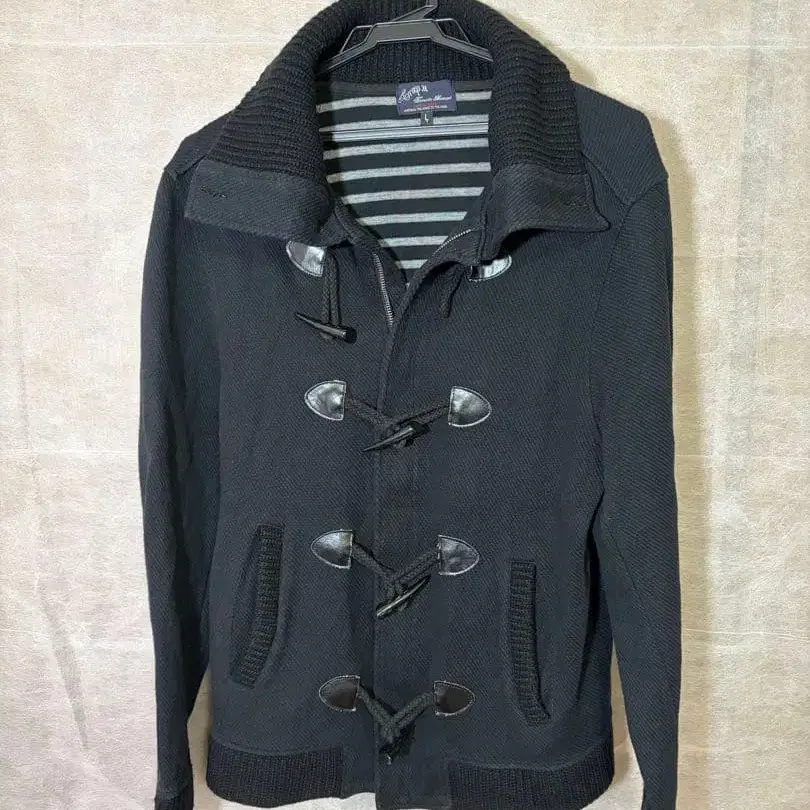 블랙 더플 코트, 안쪽 스트라이프 패턴 디자인이 특징입니다. - 색상: 블랙 - 디자인: 더플 코트 - 안쪽 디자인: 스트라이프 패턴 방문해 주셔서 감사합니다. 사이즈 - L