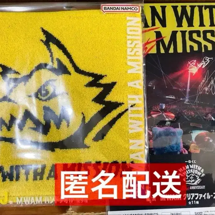 미사용품 제일복권 MAN WITH A MISSION 맨위즈 2점 로고 내용 I상 클리어 파일 1점 J상 핸드 타월 1점 총 2점 세트