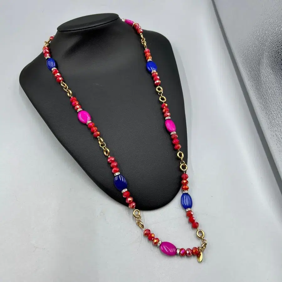 컬러풀한 비즈와 금속 부품을 사용한 캐주얼 목걸이. - 색상: 빨간색, 파랑, 핑크 - 소재: 비즈, 금속 - 스타일: 캐주얼 방문해 주셔서 감사합니다.