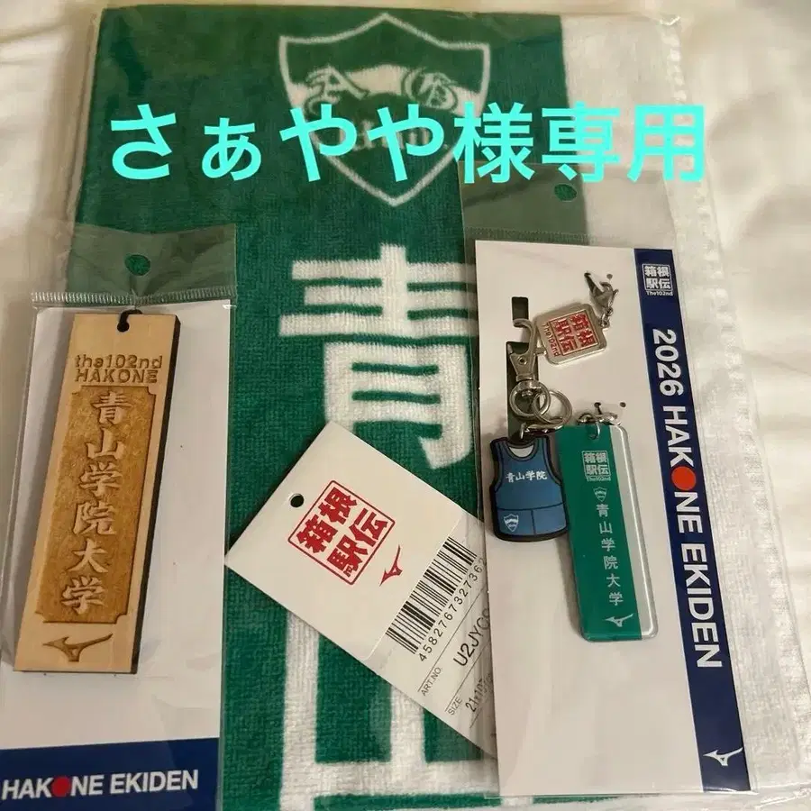 제102회 대회 2026년 하코네 역전 MIZUNO 오피셜 굿즈 아오야마가쿠인 대학의 머플러 타월과 나무 패, 키링입니다. 미즈노 2026 102회 대회