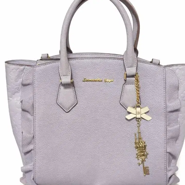 Samanthavega에서 몇 년 전에 구매한 라푼젤 콜라보 핸드백입니다. 수납력이 좋아 디즈니에 갈 때 등 매우 유용하게 사용했습니다. 몇 군데 벗겨진 부분이 있습니다. 미리 양해 부탁드립니다.