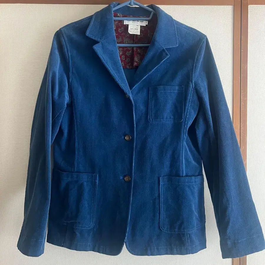 코튼 100% 네이비 테일러드 자켓, 앞면에 포켓 2개 부착. - 색상: 블루 - 소재: 코튼 100% - 사이즈: L - 디자인: 테일러드 자켓 - 포켓: 앞면에 포켓 2개 - 세탁 표시: 세탁기 사용 가능 방문해 주셔서 감사합니다.