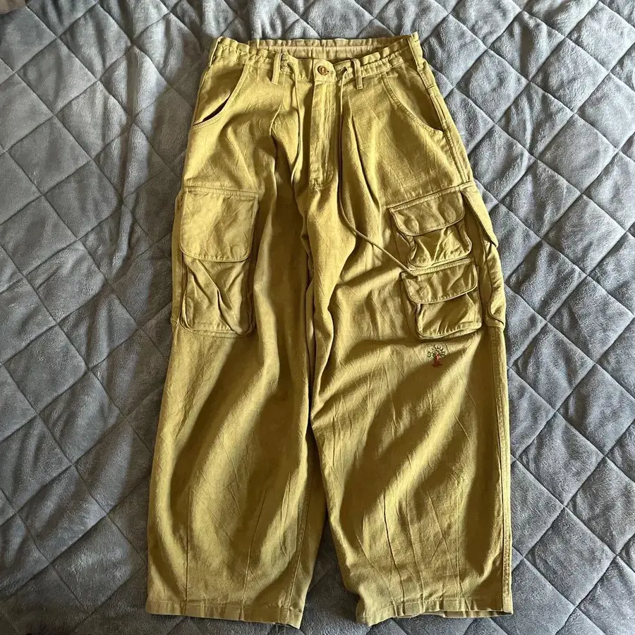 story mfg의 카고 팬츠입니다. 색상 카키 사이즈 S 총길이 98cm