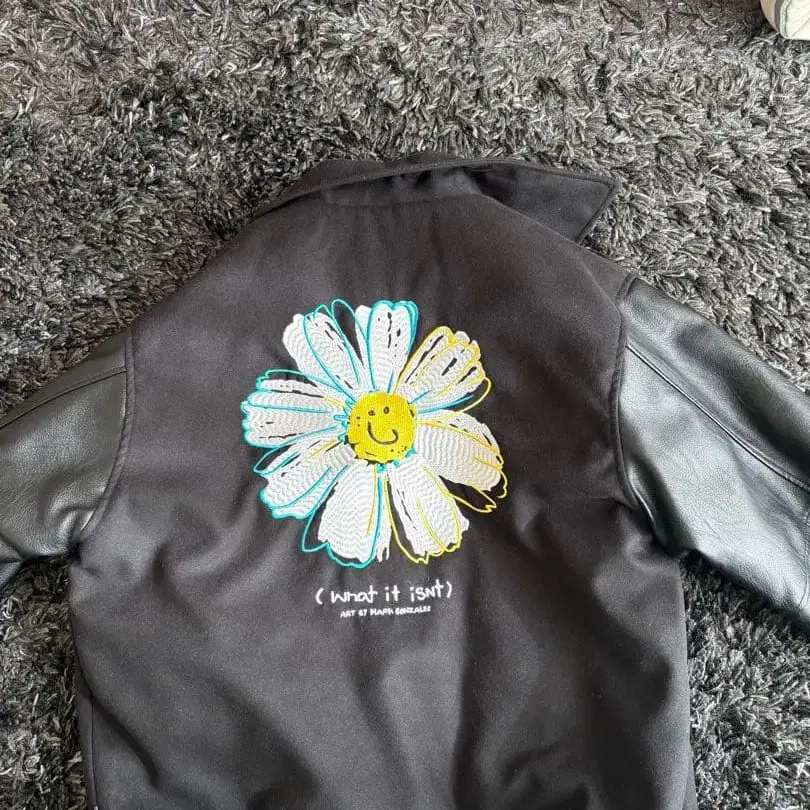 거의 착용하지 않았습니다. 상태 매우 좋습니다. 울과 가죽 소재의 바시티 자켓, 꽃 자수와 스마일리 페이스가 특징입니다. - 디자인: 꽃 자수와 스마일리 페이스 - 로고: M과 G 자수 - 브랜드명: Mark Gonzales - 소재: 울과 가죽 콤비네이션 - 스타일: 바시티 자켓 방문해 주셔서 감사합니다. 사이즈 - M
