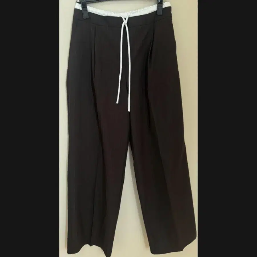 품번: 1608/125 (BROWN STRIPES) 구매 시기: 2025.10 1회 착용, 세탁 완료 하이웨스트 팬츠, 드로우 스트링이 있는 허리밴딩 2개, 콤비 패브릭, 프론트 다트, 프론트 포켓, 백에는 페이크 웰트 포켓, 와이드 레그 디자인, 사이드에 컨실 지퍼 개인 보관에 대한 이해가 있으신 분만 구매 부탁드립니다. 가격 인하 불가