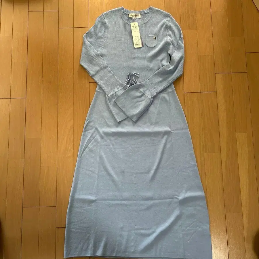 [ 미사용 새상품 ] 라이트 블루 리브 니트 원피스