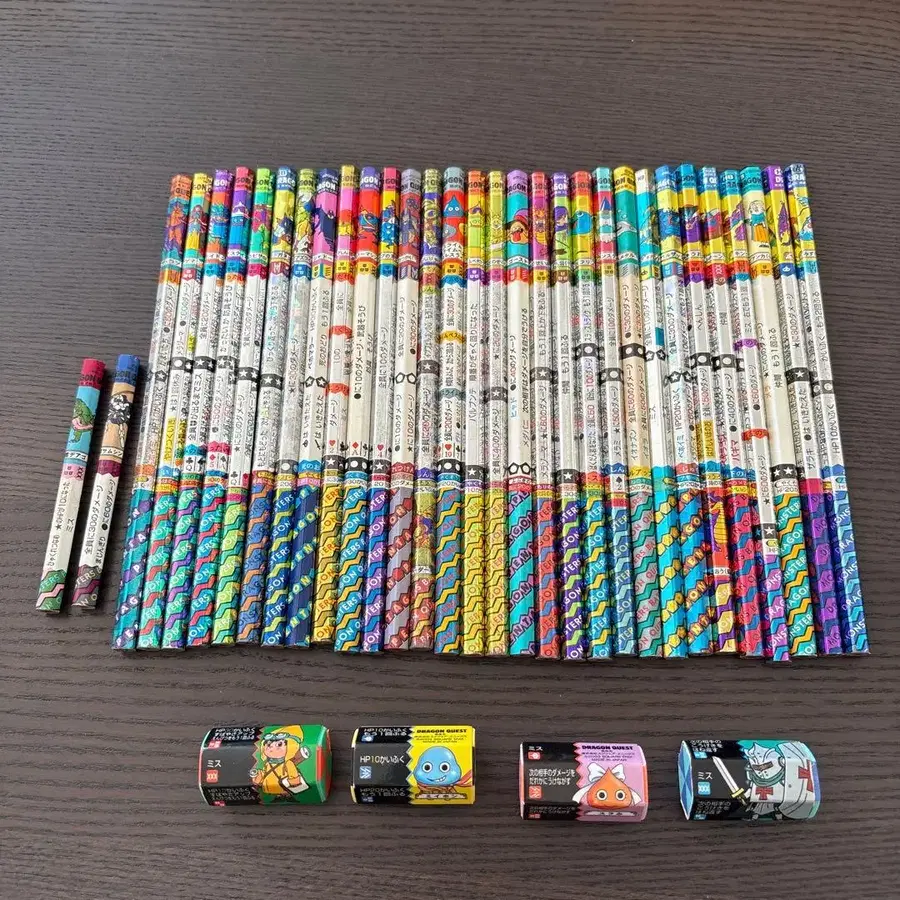 연필 30자루 (키라 23자루), 짧은 연필 2자루, 지우개 4개 세트입니다. 개인 보관 및 노후화로 인해 흠집이 많이 있는 것도 있습니다.