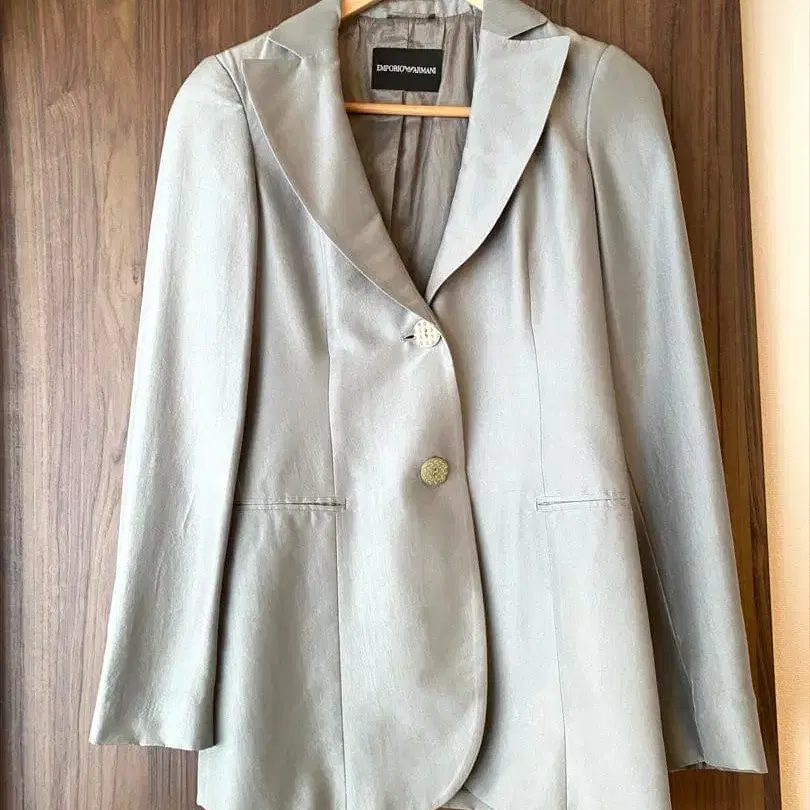 심플하고 세련된 디자인의 그레이 블루 테일러드 자켓.