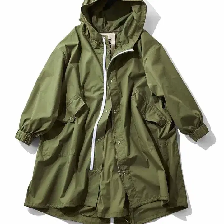 뒷면 지퍼로 설렘을 더하는 여성스러운 모즈 코트 밀리터리 M-65 피쉬테일 후드티를 포근하게 감싸는 오버 사이즈로 디자인했습니다. 프론트에는 화이트 테이프로 포인트를 주었습니다. 뒷면 지퍼를 열면 실루엣이 넓어져 역동적인 움직임이 연출됩니다. 얇고 탄탄한 면 소재는 착용감이 가볍습니다. 2~3회 짧게 착용한 깨끗한 상태입니다. 잘 부탁드립니다! 사이즈 - FREE SIZE
