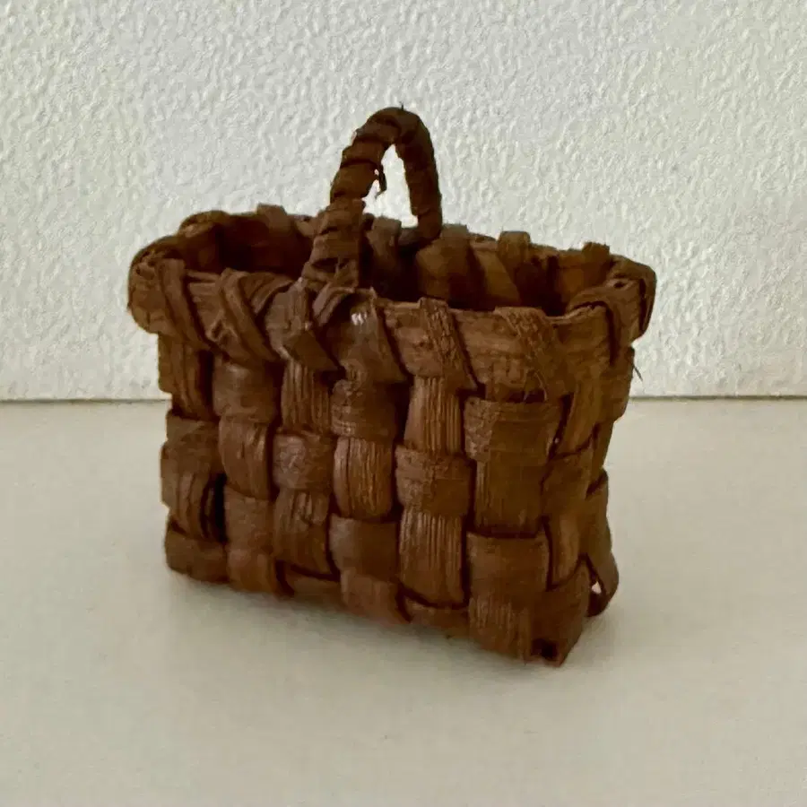 산포도 덩굴로 짜인 미니어처 바구니입니다. 그대로 장식해도 귀엽고, 부속된 끈으로 펜던트로도 만들 수 있습니다. 구매 후 사용하지 않고 계속 보관했습니다. 폭 약 4.3cm 높이 약 3.5cm (손잡이 제외) 깊이 약 2.2cm