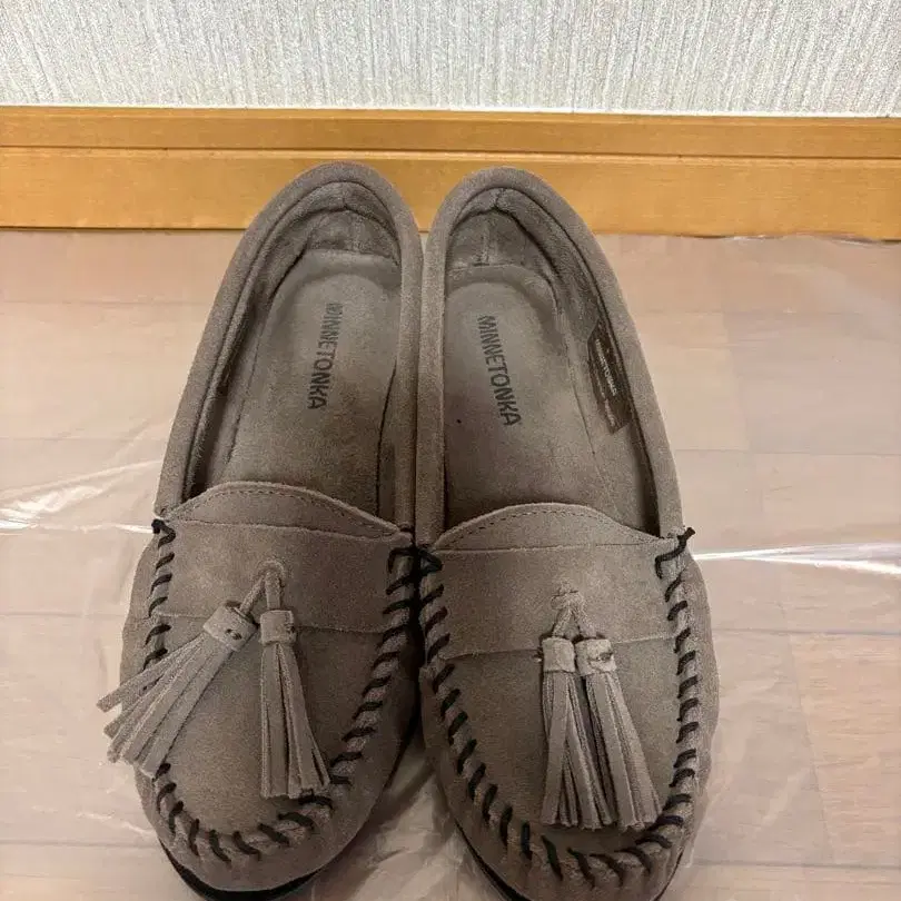 태슬이 달린 그레이 스웨이드풍 모카신, 플랫 밑창으로 쾌적한 착용감. - 색상: 그레이 - 디자인: 태슬 장식 모카신 - 소재: 스웨이드풍 - 스타일: 플랫슈즈 - 밑창: 러버 솔 ※ 상자 없음 방문해 주셔서 감사합니다. 사이즈 - 25cm