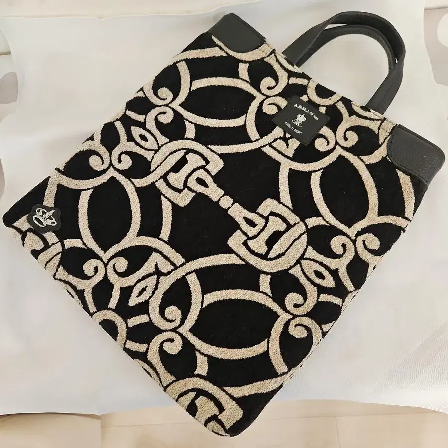 자카드 소재의 비트 패턴 토트백. 사용 횟수가 적어 새상품급이며 새상품이지만, 자택 보관임을 이해하시는 분께 잘 부탁드립니다. 약 가로 32 x 세로 35 바닥 4 cm