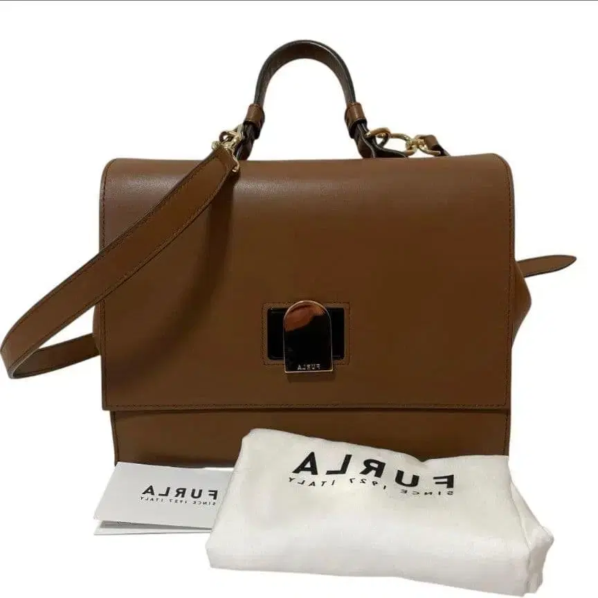 - 상단에 가죽 소재의 라운드 핸들