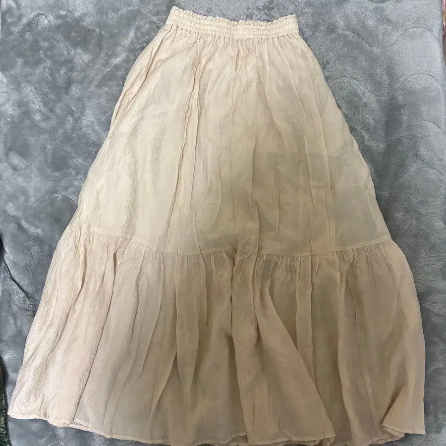 그레이 데님풍 롱 스커트 허리밴딩 니코앤드