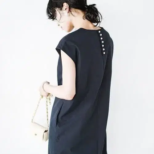 펄 버튼이 화사함을 더해주는 깔끔한 실루엣의 원피스
