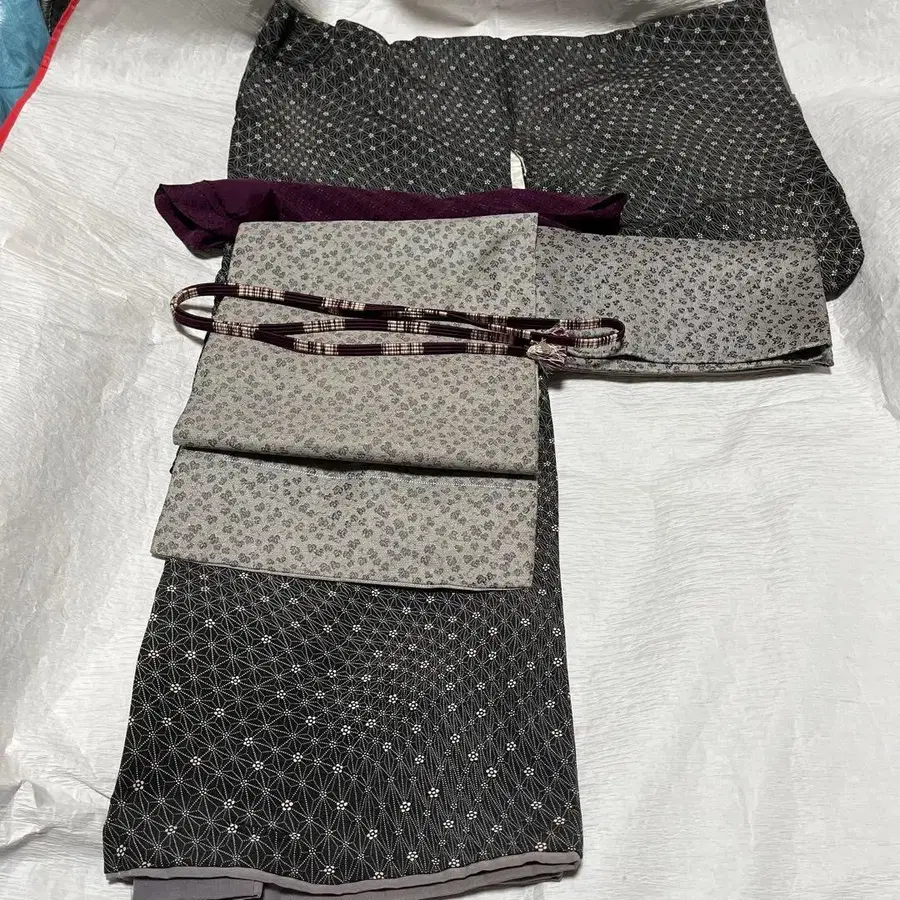 4점 (기모노, 오비, 오비 장식 천, 허리띠) 세트