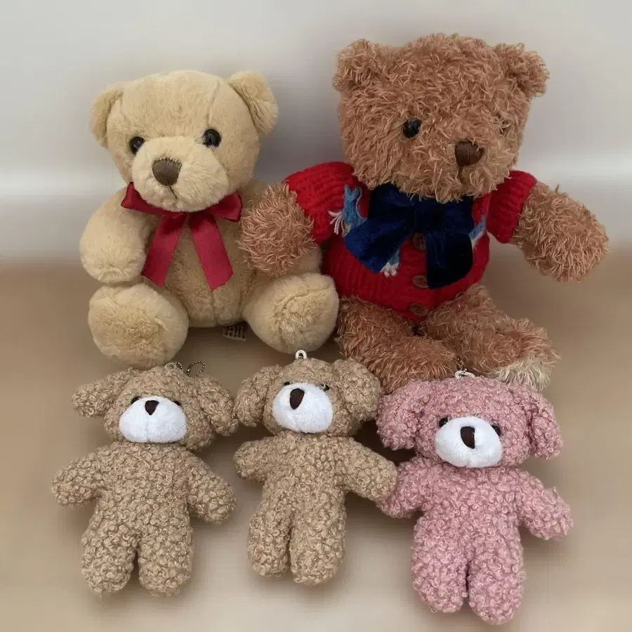 부드러운 소재로 만들어진 귀여운 곰 봉제 인형 5개 세트. - 종류: 봉제 인형 - 색상: 베이지, 브라운, 핑크 - 사이즈: 대, 중, 소 (큰 곰과 작은 곰 세트) - 특징: 부드러운 소재, 귀여운 디자인 - 수량: 5개 세트 방문해 주셔서 감사합니다.