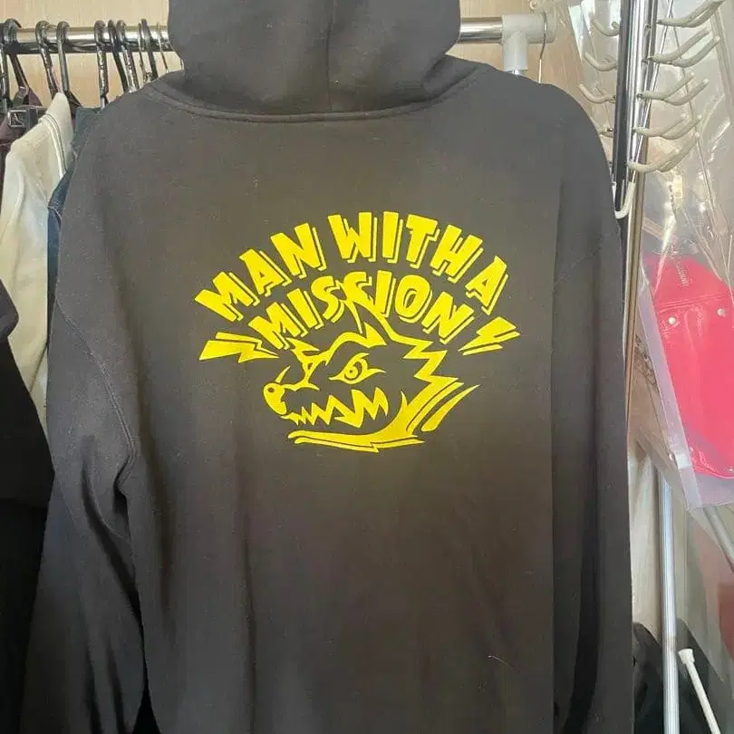 muahmuah 집업 후드티 프리 사이즈 블랙 속기모 자수 로고
