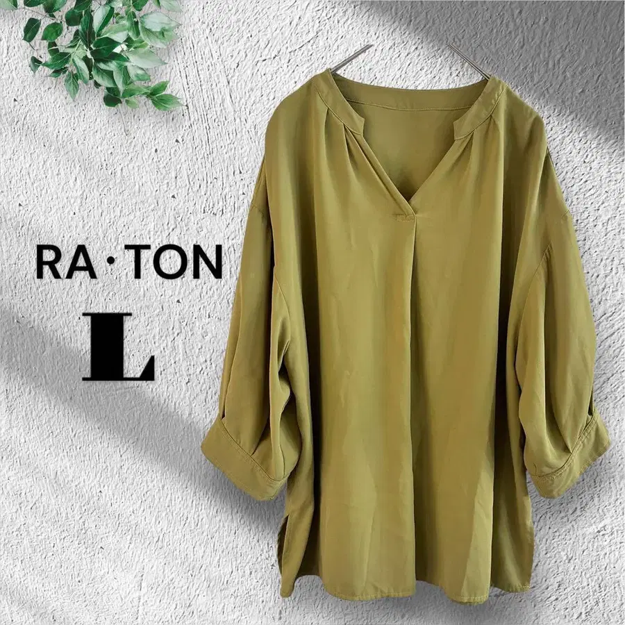 RA TON [38] V넥 깔끔한 블라우스 5부 소매 오피스 수트