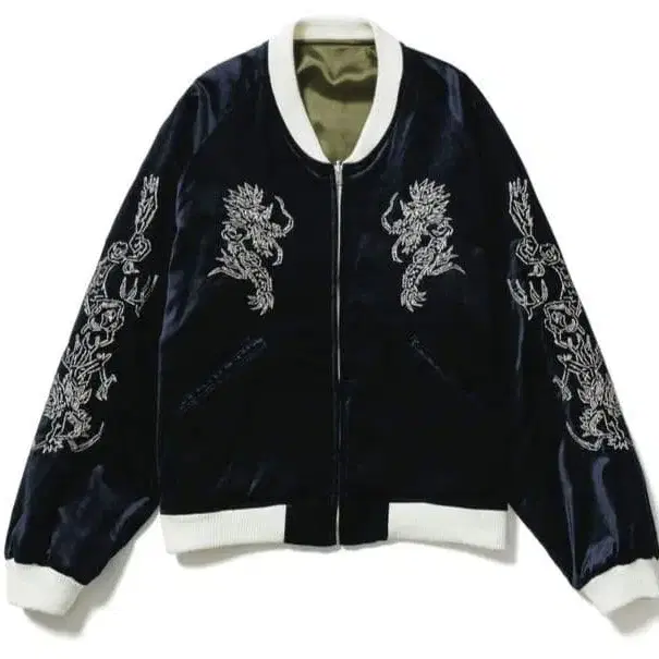 ■ Sasquatchfabrix. ■ 'EASTEND DRAGON' SOUVENIR JACKET ■ 2024년 가을/겨울 모델 ■ 네이비 x 그린 ■ 리버서블로 착용 가능합니다. ■ XL 사이즈 ■ 가슴 너비 71cm, 기장 67cm ■ 작게 접어서 포장합니다.