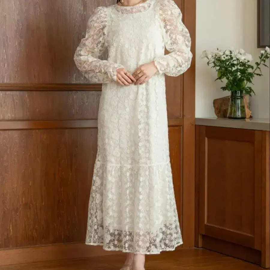 사만사 모스모스 스캘럽 레이스 자수 롱 원피스 아이보리 F 사이즈