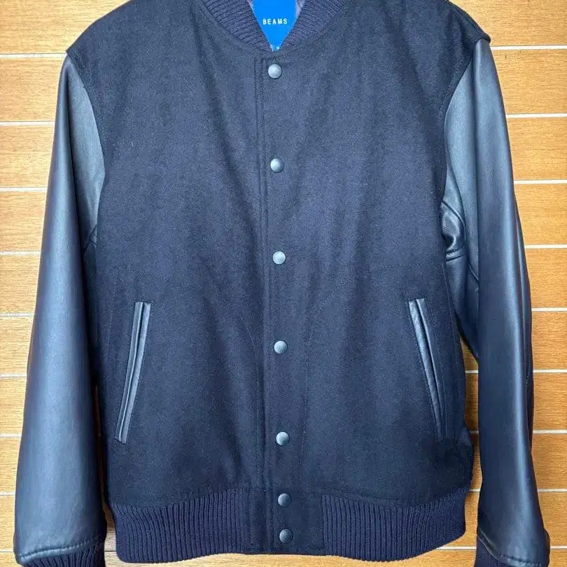 빔즈의 바시티 자켓입니다. 암 부분은 양가죽입니다. 색상은 네이비입니다. 실측으로 기장 66cm, 가슴 너비 55cm, 소매 길이 60cm입니다. 몇 번 착용했지만 보풀도 없고 상태는 좋다고 생각합니다. 중고품이므로 이해해 주시는 분 부탁드립니다.