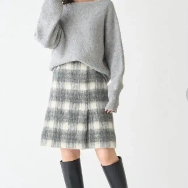 플레어 스커트 체크 무늬 무릎 아래 길이