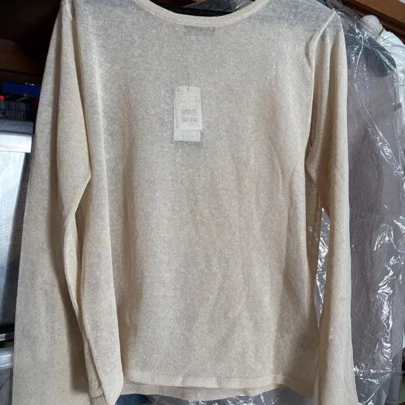 베이지 색상의 긴팔 니트입니다. 얇고 부드러운 소재이며 비침이 있습니다. - 색상: 베이지 - 사이즈: 9호 - 소재: 셀룰로오스 60%, 린넨 25%, 폴리에스테르 15% - 가격: 13,000원