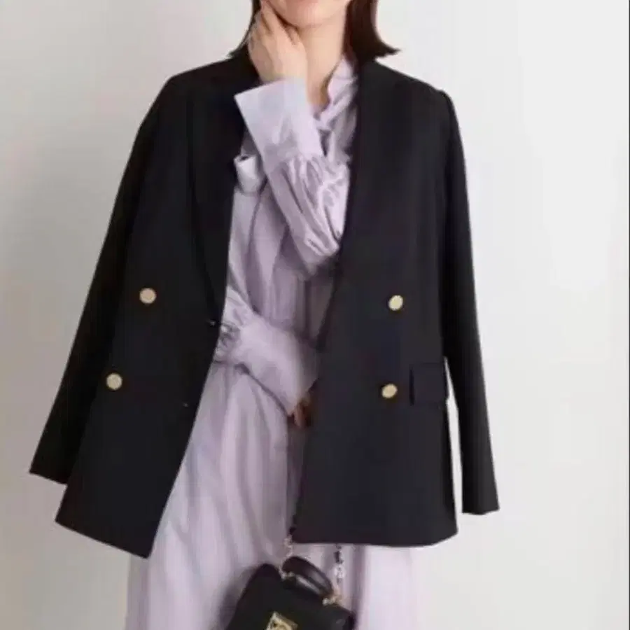 단정한 실루엣으로 격식 있는 느낌을 더하는 테일러드 더블 자켓.