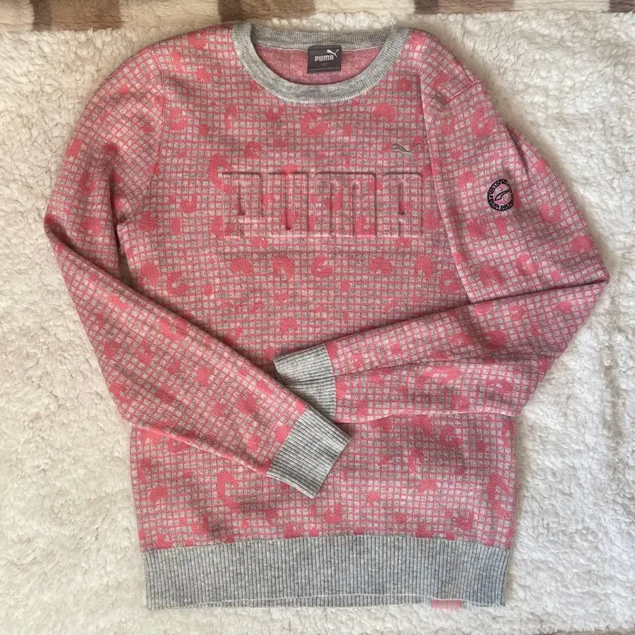 핑크 그레이 색상의 귀여운 스웨터입니다. 몇 번 사용했습니다. 소매, 옷깃, 밑단에 데미지는 없습니다.