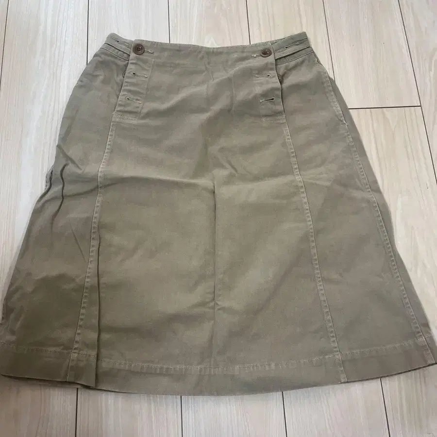 MilaOwen 스코치 단추 턱 디테일 랩 스커트 베이지 올 시즌