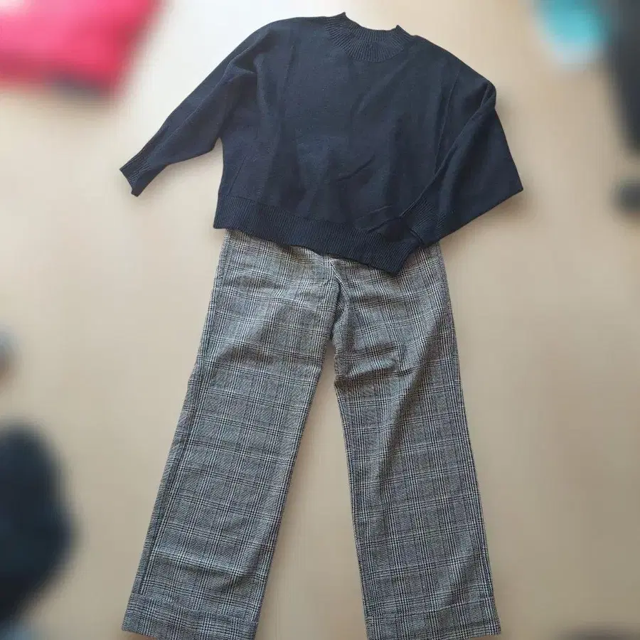 pium 비쥬 가디건 x 체크 원피스 세트 블랙 핑크 완판템