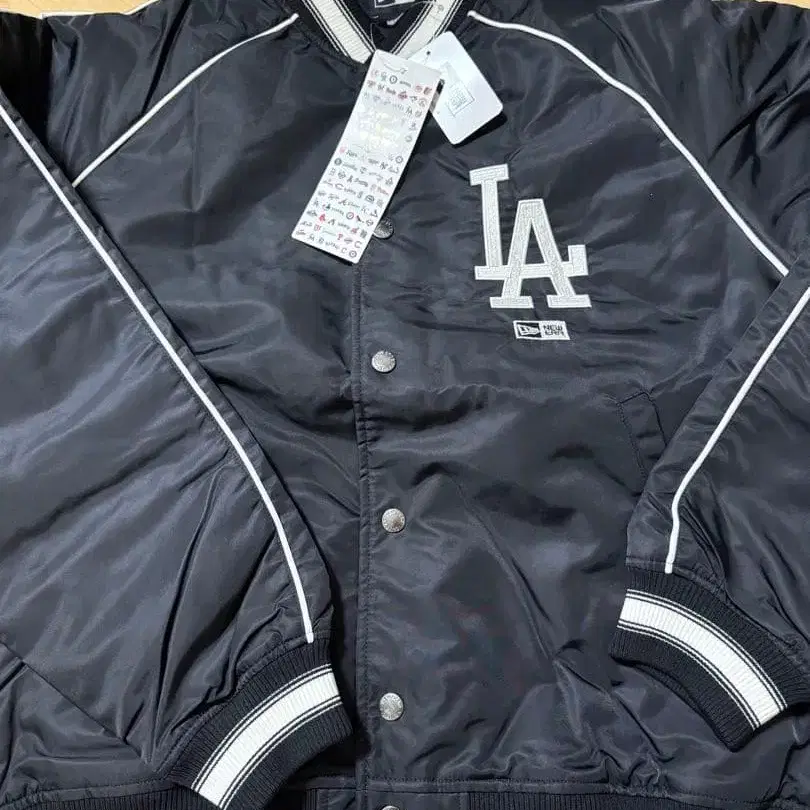 LA 로고 자수 바시티 자켓, 폴리에스테르 소재, M 사이즈.