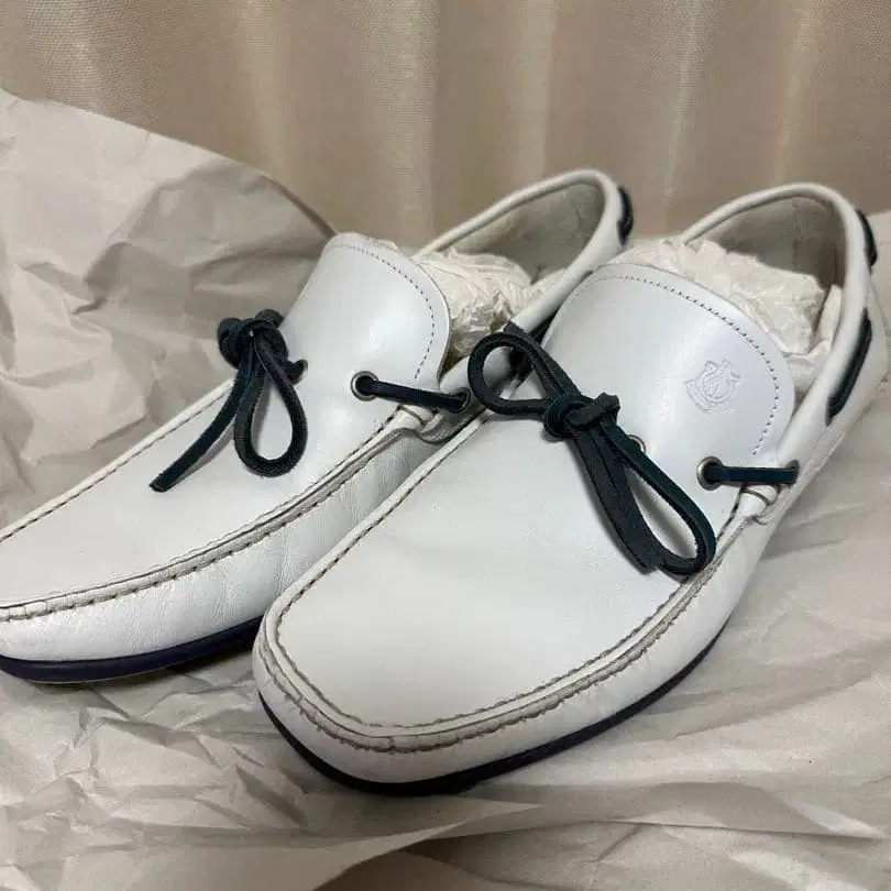 화이트 가죽의 리본 포함 로퍼, 러버 솔로 쾌적한 착용감.