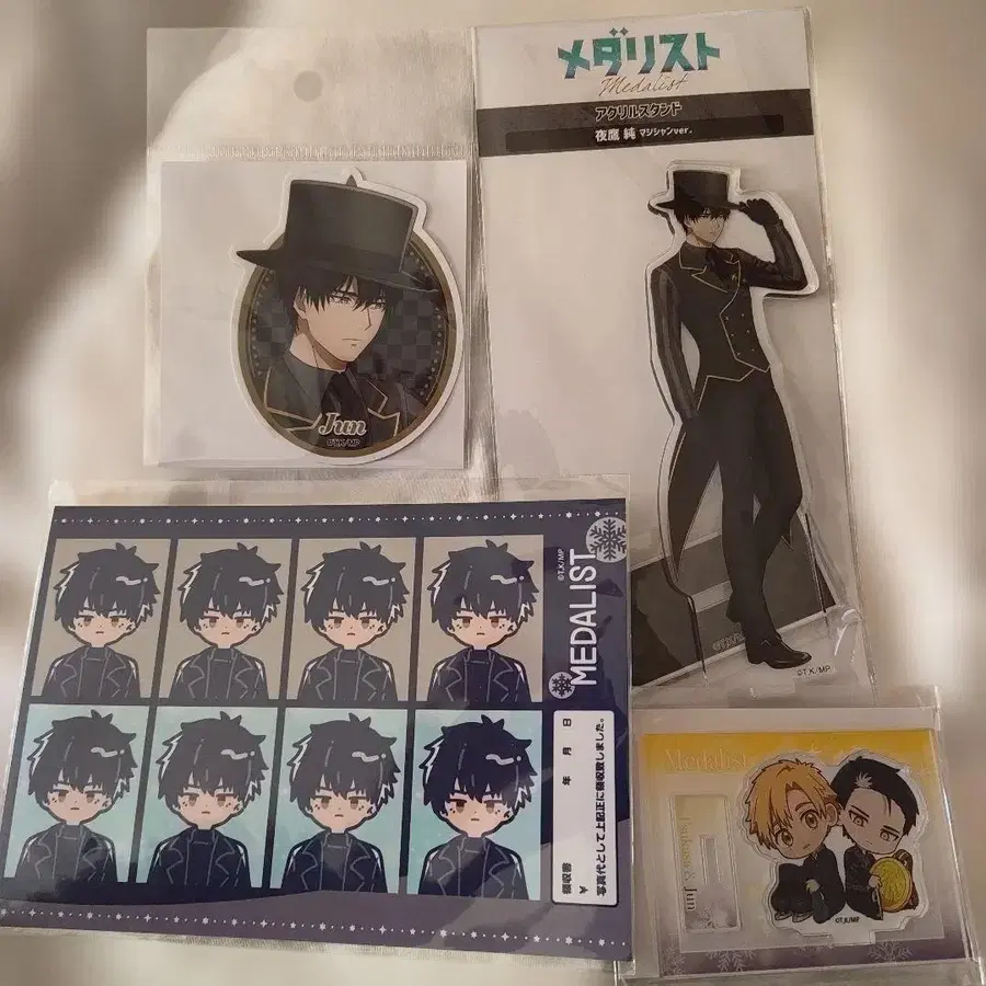 미개봉 새상품이지만 자택 보관품이므로 패키지 상태 등은 양해 부탁드립니다. 메달리스트 요타카 준 굿즈 4점 레토포프 증명 사진 스티커 귈귈 미니 스탠드 아키우라 로지 & 요타카 준 아크릴 스탠드 매지션 ver 다이컷 스티커 요타카 준 매지션 ver