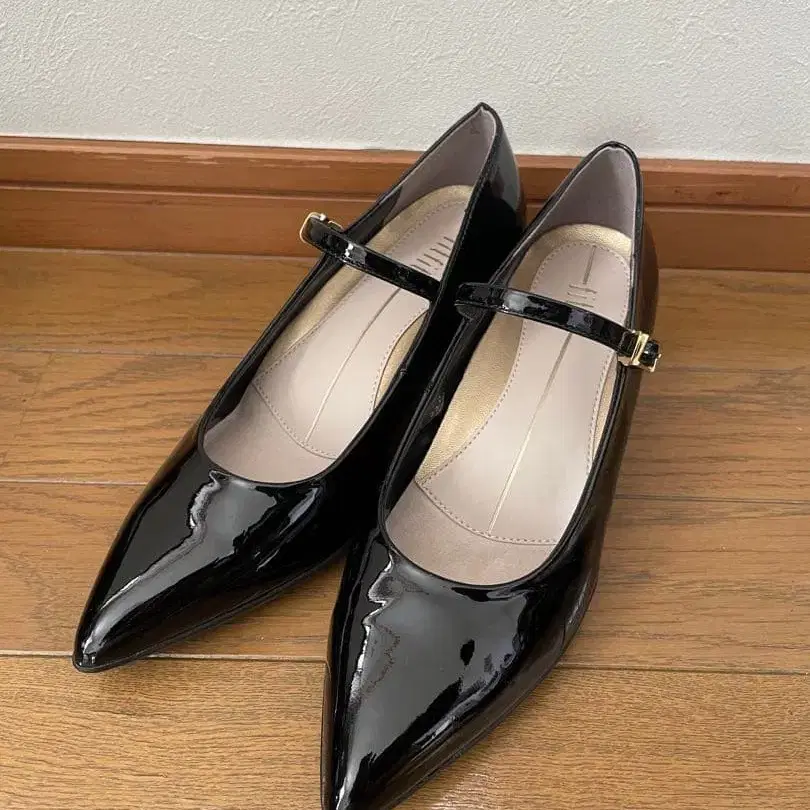 fitfit - 외반모지에도 편안한 신발 - 에나멜 블랙 포인티드 힐 스트랩 펌프스 천연 가죽제 사이즈 = 23.0cm 정가 14,190엔