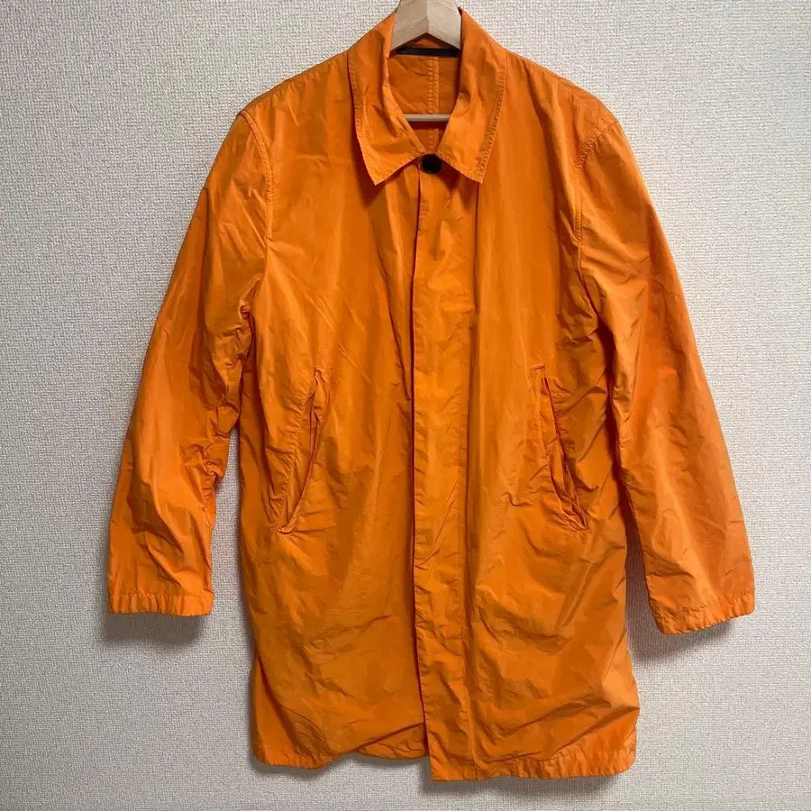 폴스미스의 코트입니다. 봄에 구매하여 몇 번 사용 후 보관하고 있었습니다. 사용하지 않게 되어 판매합니다. - 색상: 오렌지 - 스타일: 스텐카라 코트 - 소재: 나일론 또는 폴리에스테르 (추측) - 특징: 프론트 버튼, 사이드 포켓 방문해 주셔서 감사합니다.