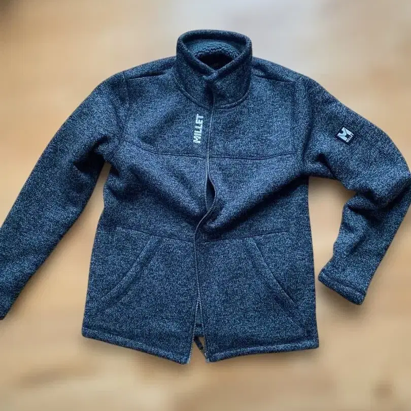 집업 그레이 플리스 자켓, MILLET 로고 포함.