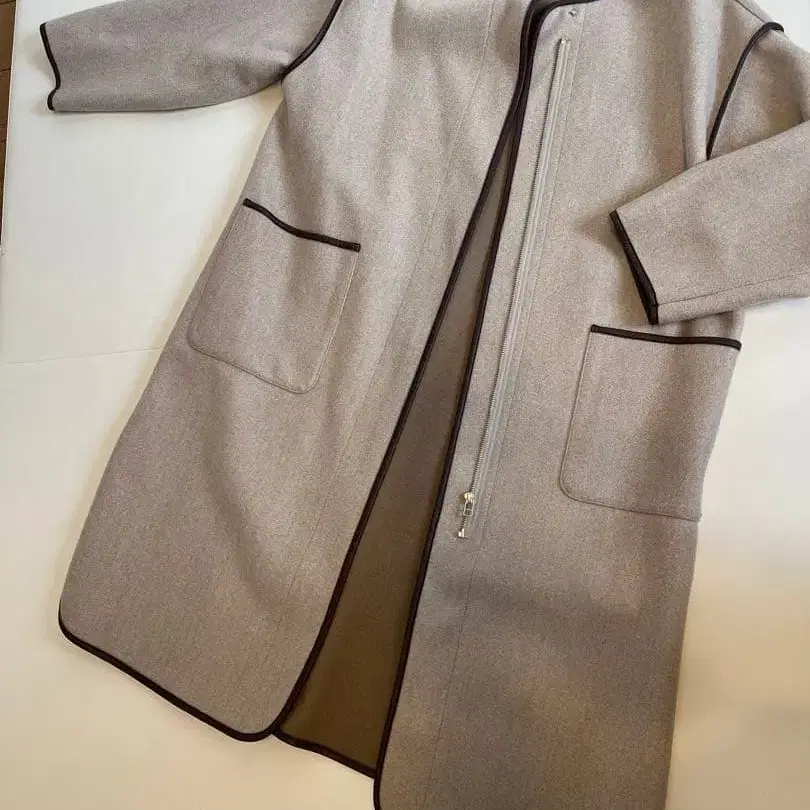 유나이티드 애로우즈 36 사이즈 파이핑 베이지 롱 코트