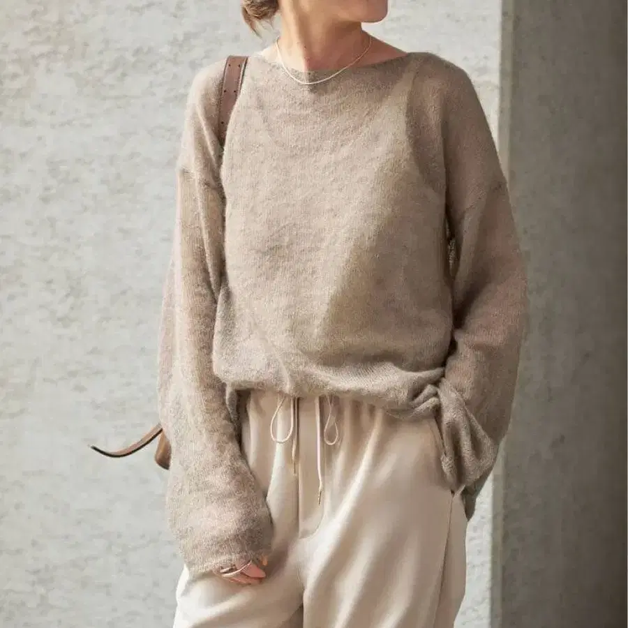데콜테 라인을 예쁘게 보여주는 보트넥과, 자연스러운 내추럴함이 느껴지는 루즈 실루엣이 매력적입니다.