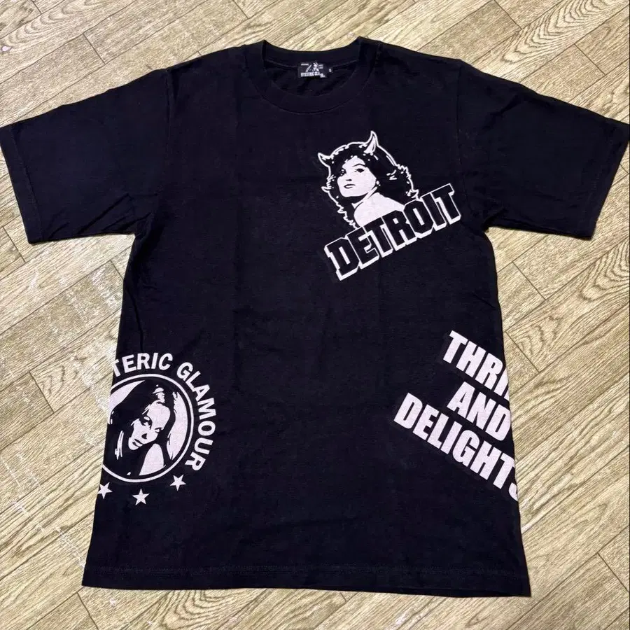 자동 번역되었어요. 원문보기그래픽 프린트 블랙 T셔츠, 남성용 S 사이즈, 백 프린트 포함. 남녀 공용으로 착용 가능합니다.