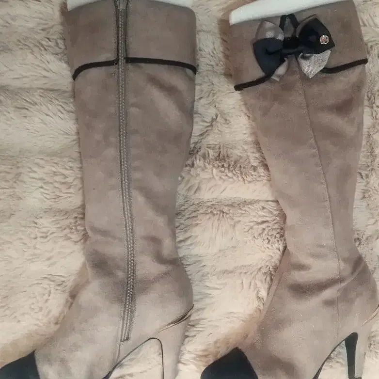 [새상품] 그레이 스웨이드 롱 부츠 리본 포함