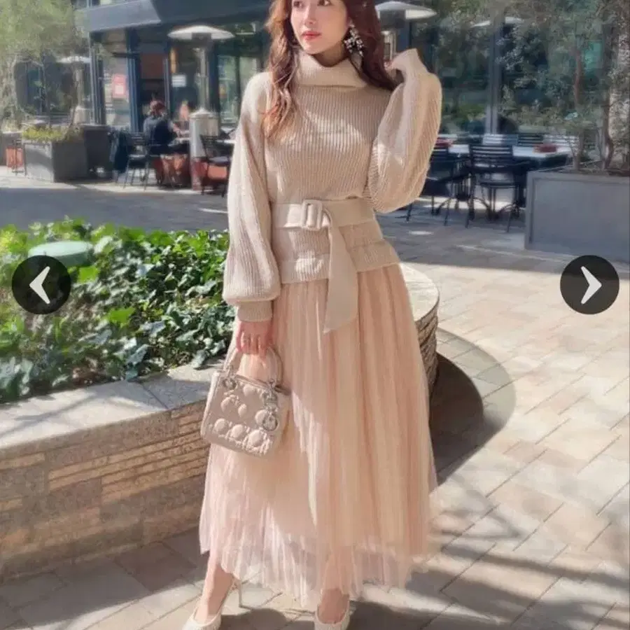택 포함 새상품 미코아메리 니트 x 샤샤 스커트 원피스 베이지