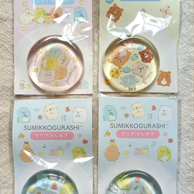 [미사용 새상품] 스미코구라시 & 리락쿠마 클리어 젓가락 받침 4개 세트