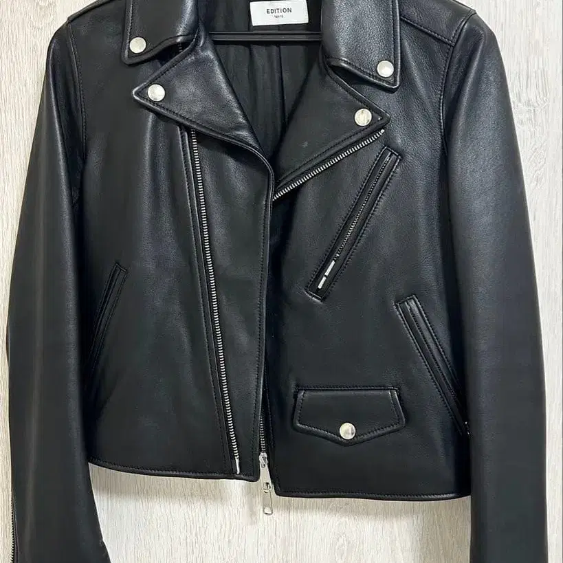 ★ EDITION의 블랙 가죽 라이더 자켓, 스타일리시하고 내구성이 뛰어난 디자인.